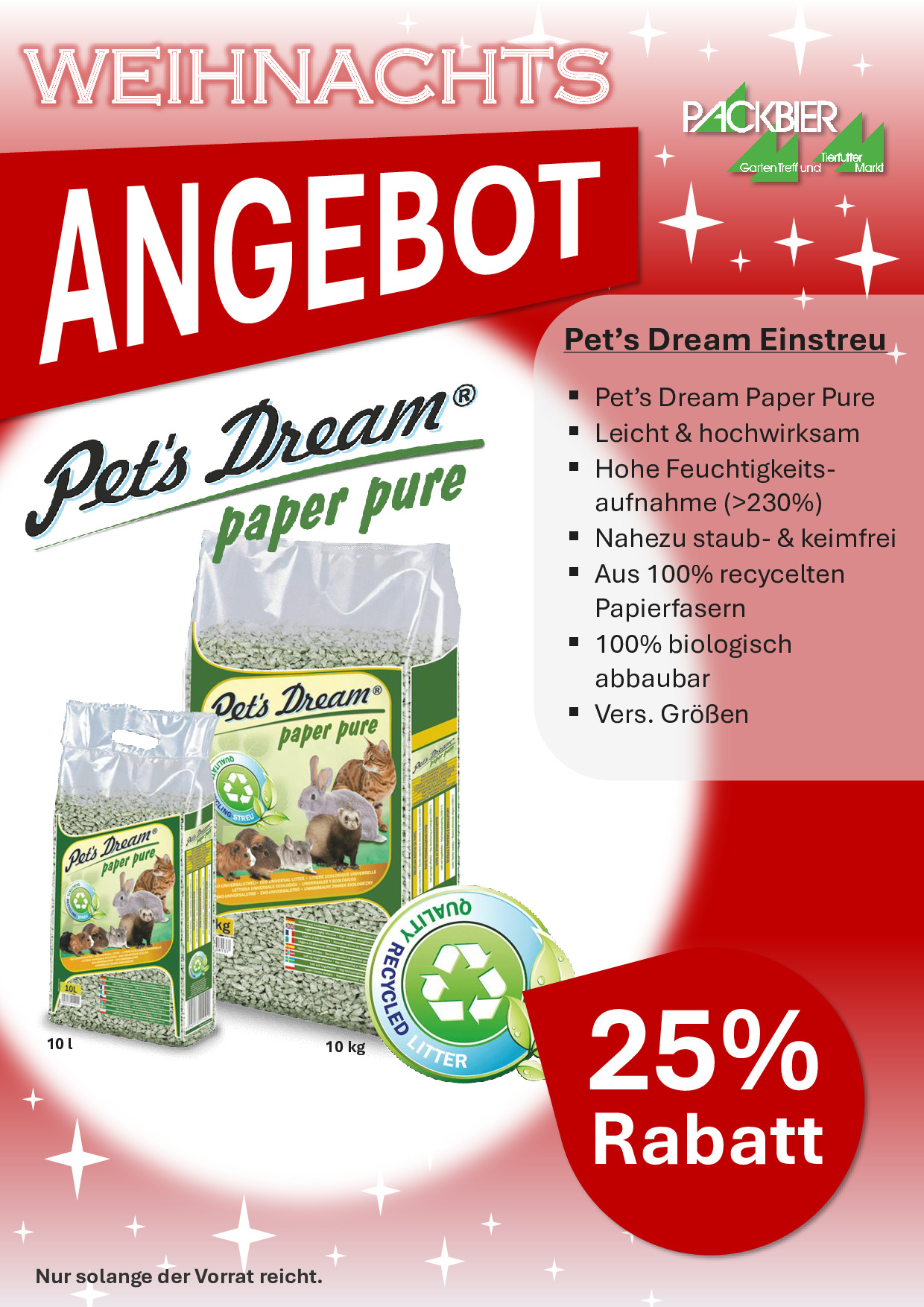 25% Rabatt auf Pet's Dream Paper Pure Einstreu